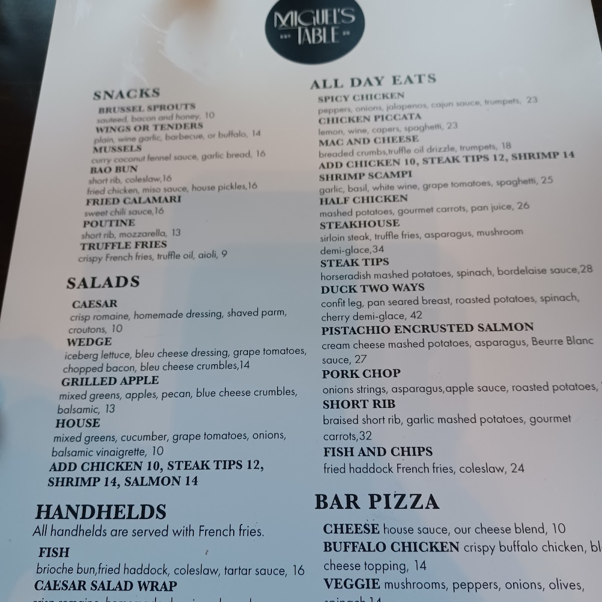 Welcome to Miguel's Table, a delightful American restaurant located in the heart of West Bridgewater, MA. This modern eatery captivates with its upscale ambiance, where every detail has been thoughtfully designed. Guests rave about the menu, which features crisp Truffle Fries and savory Fried Chicken Bao Buns, showcasing a perfect blend of flavors. Signature dishes like their mouthwatering Smash Burger and flavorful Nashville Chicken Sandwich leave diners wanting more.